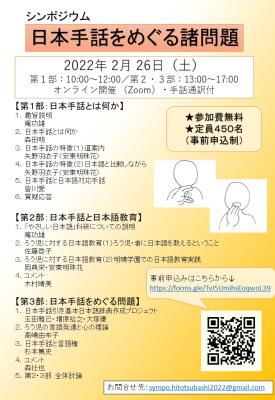 日本手話と日本語に関するシンポジウム開催 2/26(土)オンライン開催
